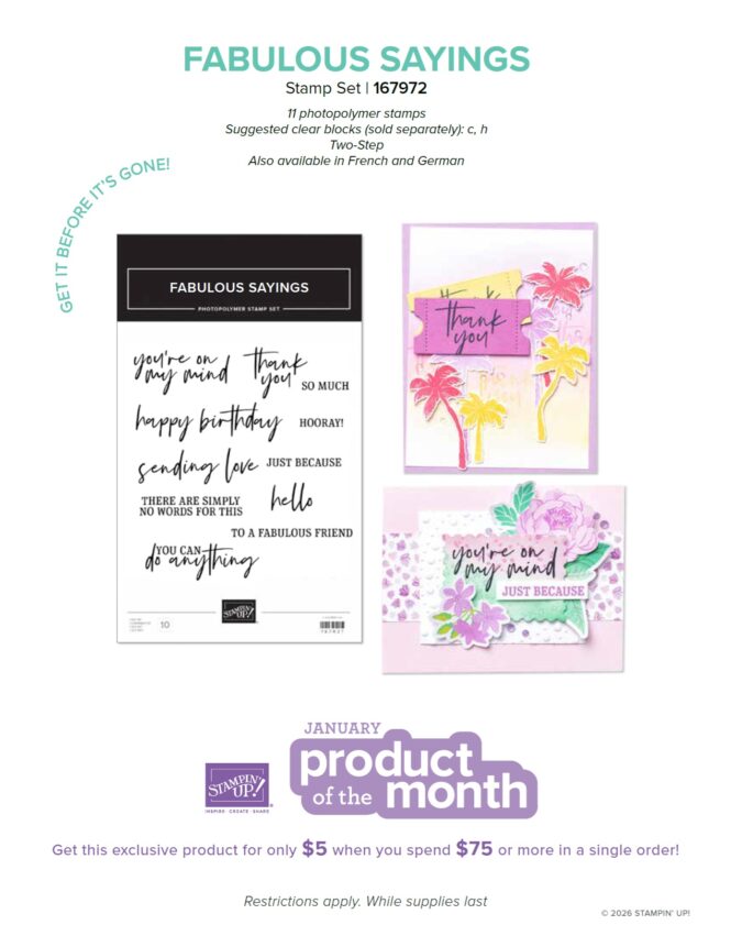 - Bonus Days starts! – For every $50 you spend from January 6 to February 2, 2026, you will receive a coupon code from Stampin’ Up! for $5! Save your coupon codes and redeem them from February 3-28, 2026! Read all about it HERE.