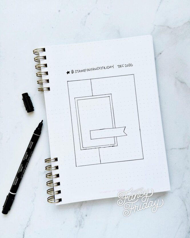 This month, our Stampin’ Fancy Friday theme is a sketch! I love a good sketch to get my creative juices flowing. I decided to make a last minute Christmas card using the Ornamental Christmas Bundle. It’s a beautiful bundle with gorgeous coordinating Modern Christmas Designer Series Paper that’s printed in dramatic black, white, and gold.