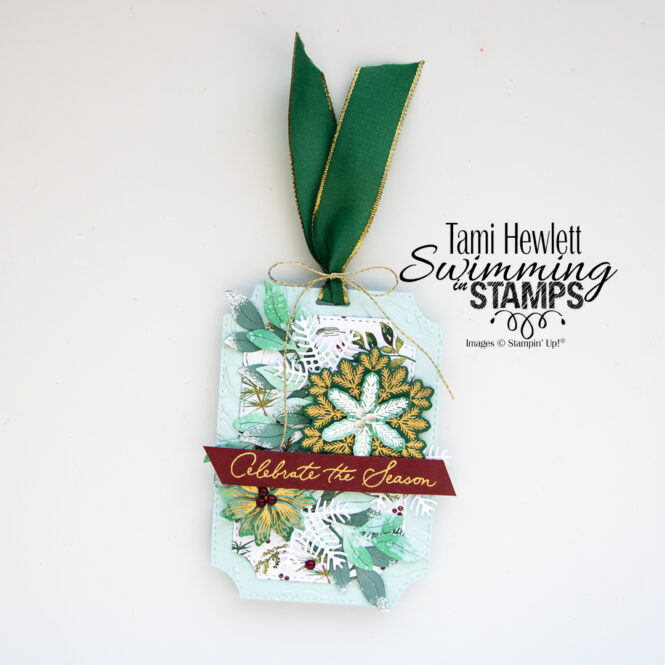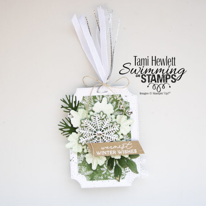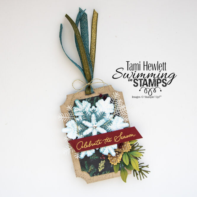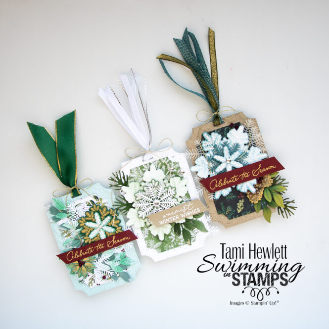 Since I’ve been working with the Delicate Pines Bundle for my online class coming up this Thursday and Friday, I thought I’d use it to make three special holiday tags. A lot of the techniques I used on these tags are very similar to the ones I’ll be demonstrating during my online class. It’s not too late to sign up for Option 2!