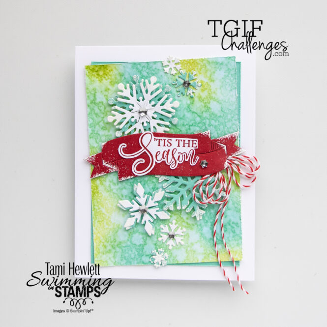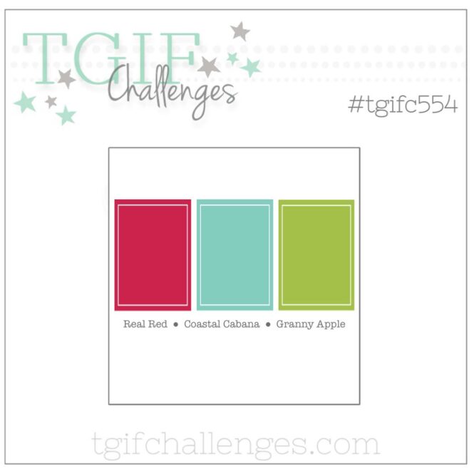 It’s the first Friday of the month, so that means a new TGIF Color Challenge! This month, we have a festive color combo including Real Red, Coastal Cabana, and Granny Apple Green. Love this! I love any combo with bright, happy colors!