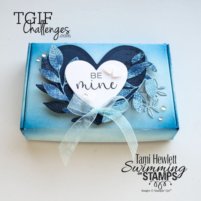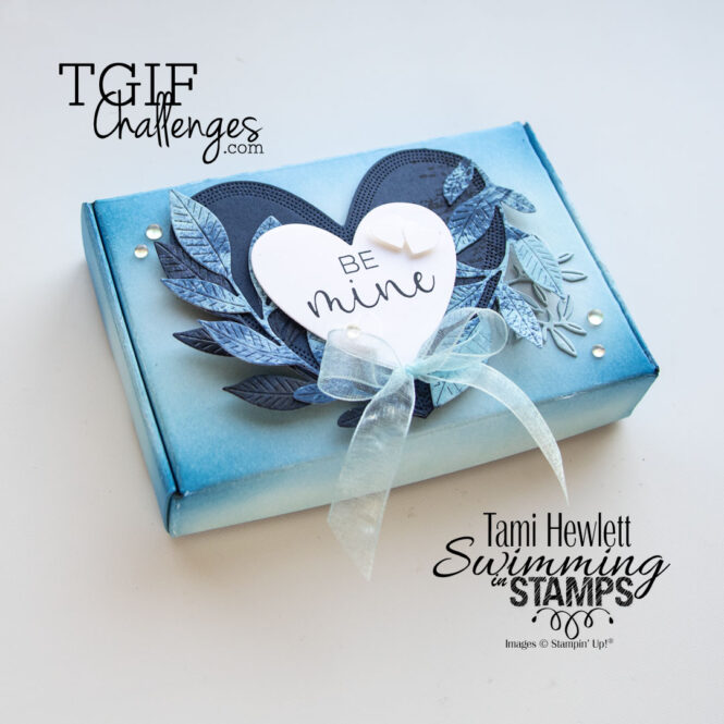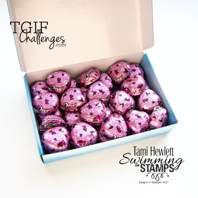 It’s Friday, and that means one more TGIF Challenge for this month. This week, the designers are all creating Valentine-themed projects. I decided to make a decorative box of candies for my husband combining some new and old favorite products.